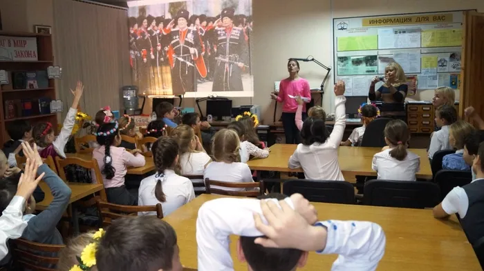 Дети из школ № 4 и № 6 познакомились с историей и культурой кубанского казачества, в том числе с бытом, пищей, одеждой, традициями и обычаями казаков. Также ребята узнали о том, как и из чего строились казачьи хаты, и с удовольствием отгадывали загадки, играли в интерактивно-познавательную игру «Моя хата рубленая», которая позволила закрепить изученный материал. В завершение каждой встречи дети смотрели мультипликационный фильм на казачью тему.