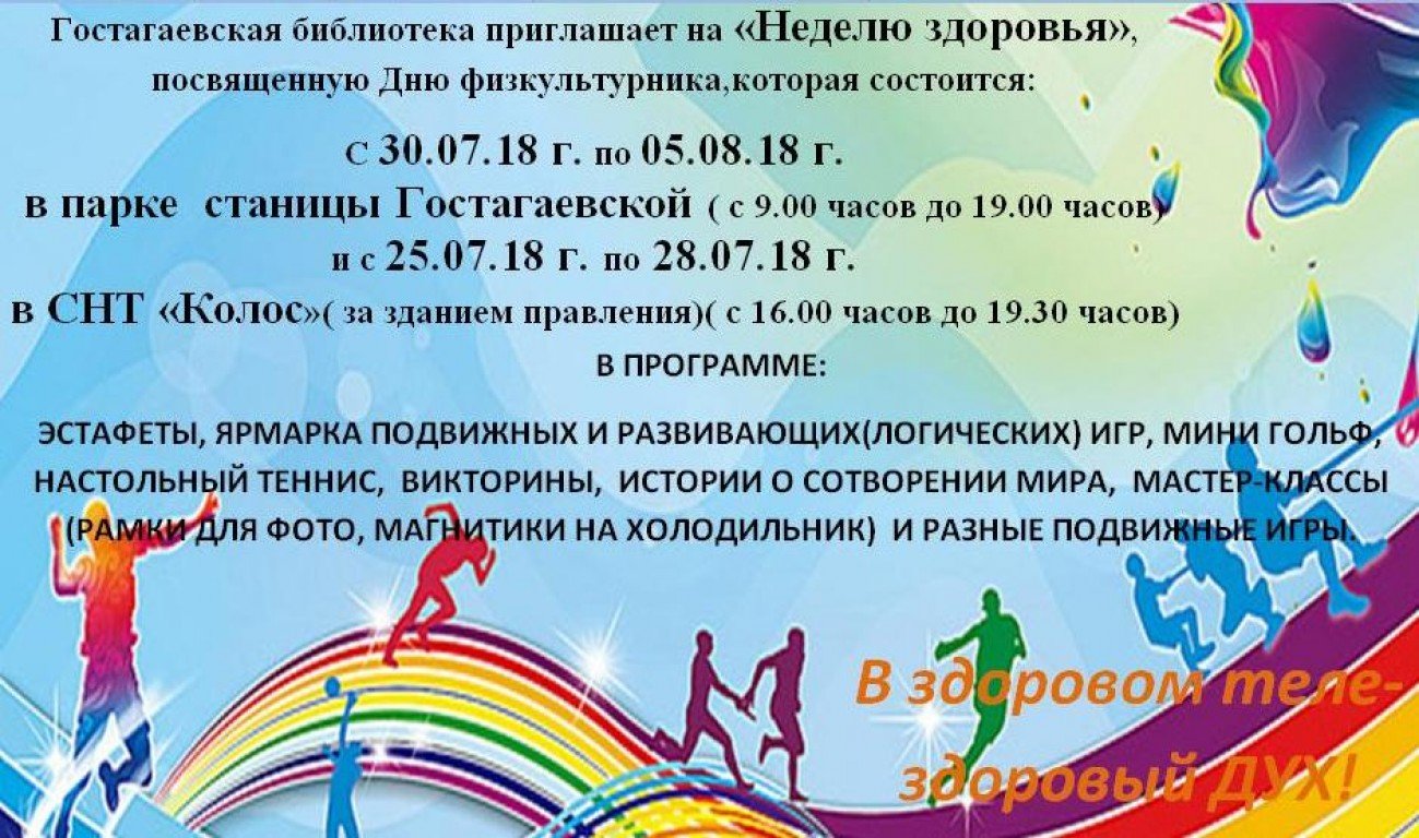 Гостагаевская библиотека приглашает на «Неделю здоровья», посвященную Дню физкультурника.